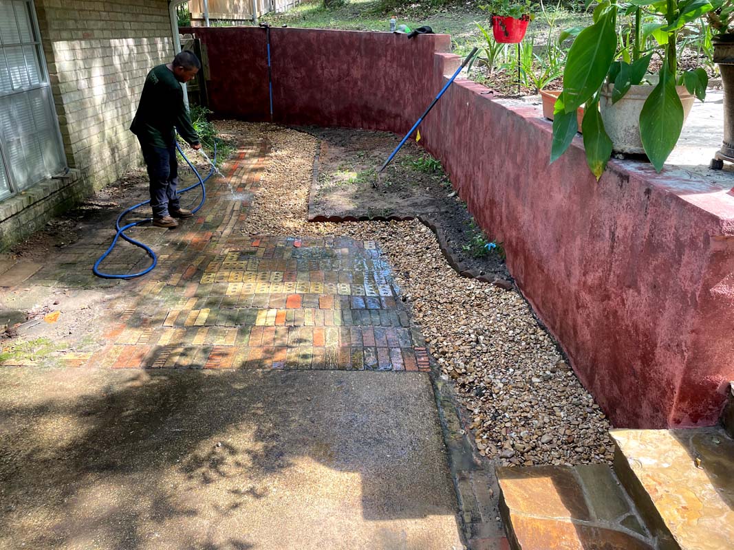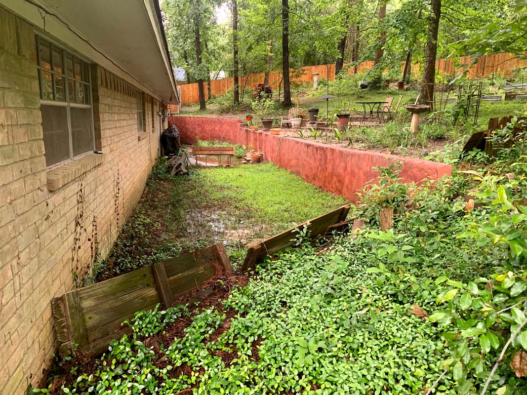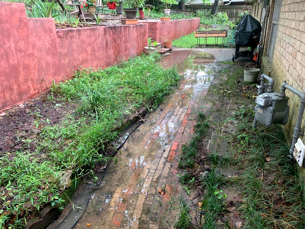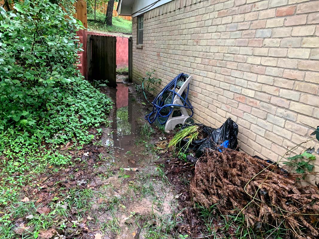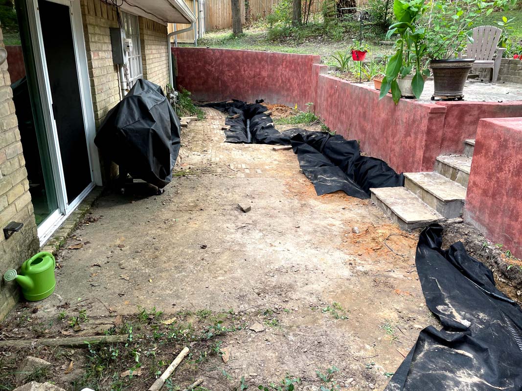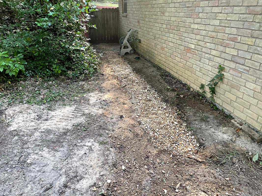 This customer had extensive standing water in the backyard. We installed a French drain to collect the water and the drain exited through our custom curb drain at the street. This process indluded boring under the steps. Mistakes happen, though. The utility locators marked the wrong lines, and we cut the cable line. Since we are set up to repair most cable breaks, we were able to get the customer's internet back up quickly. This is why experience matters. When you need seasoned professionals, call (936) 615-6568.