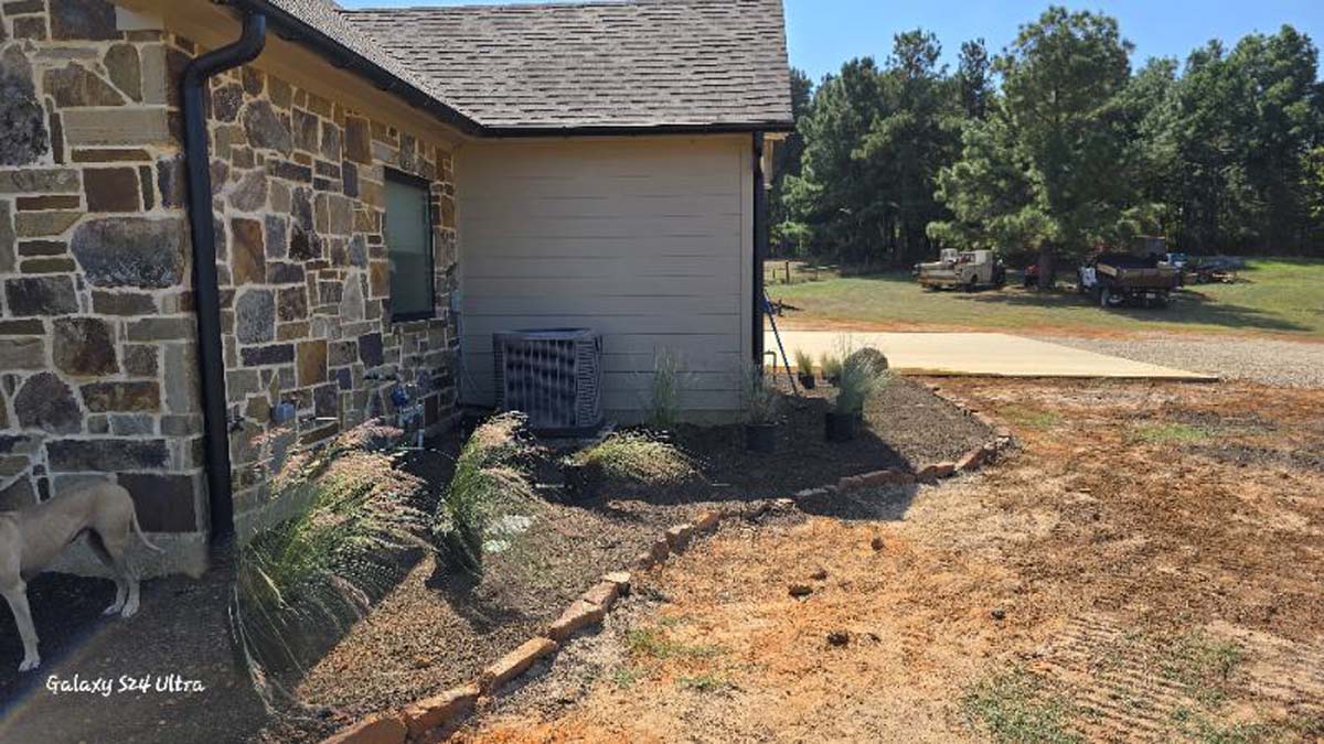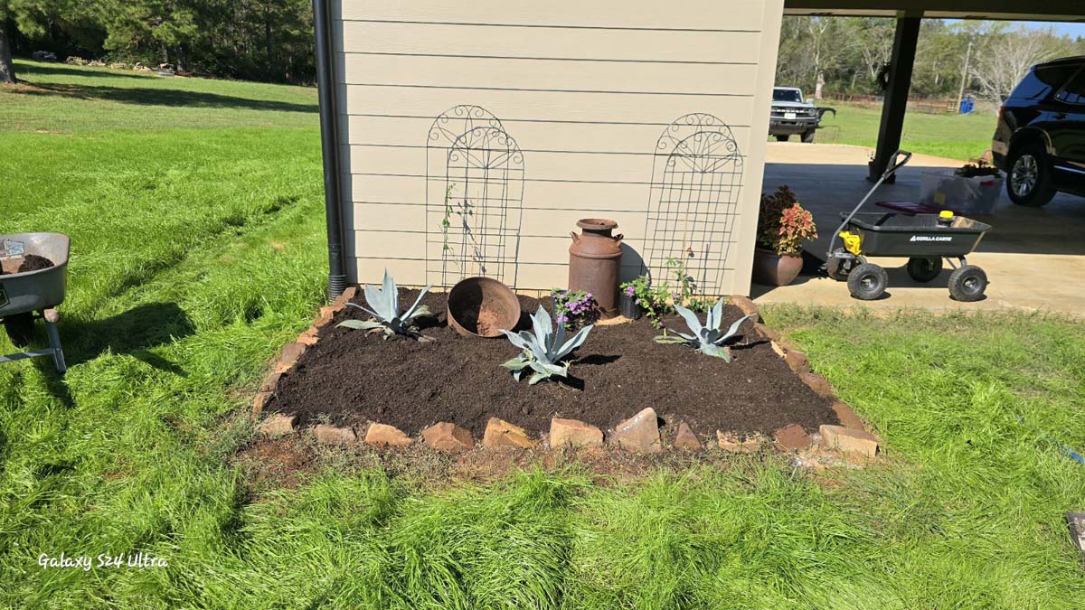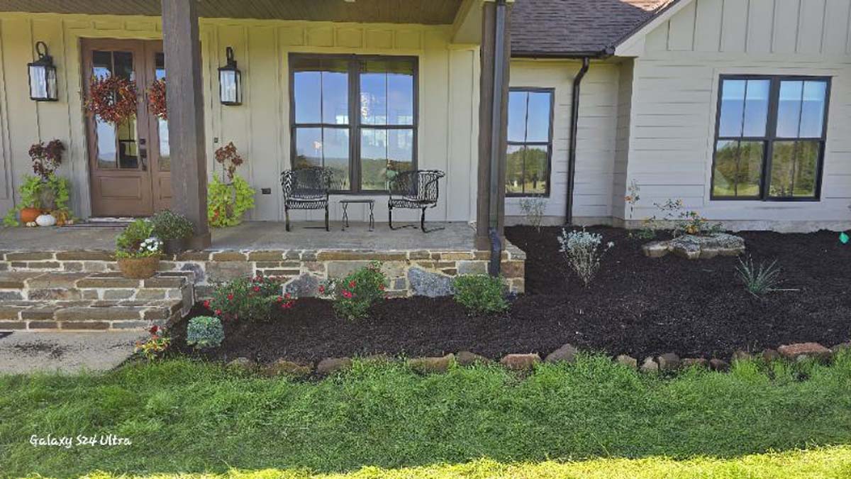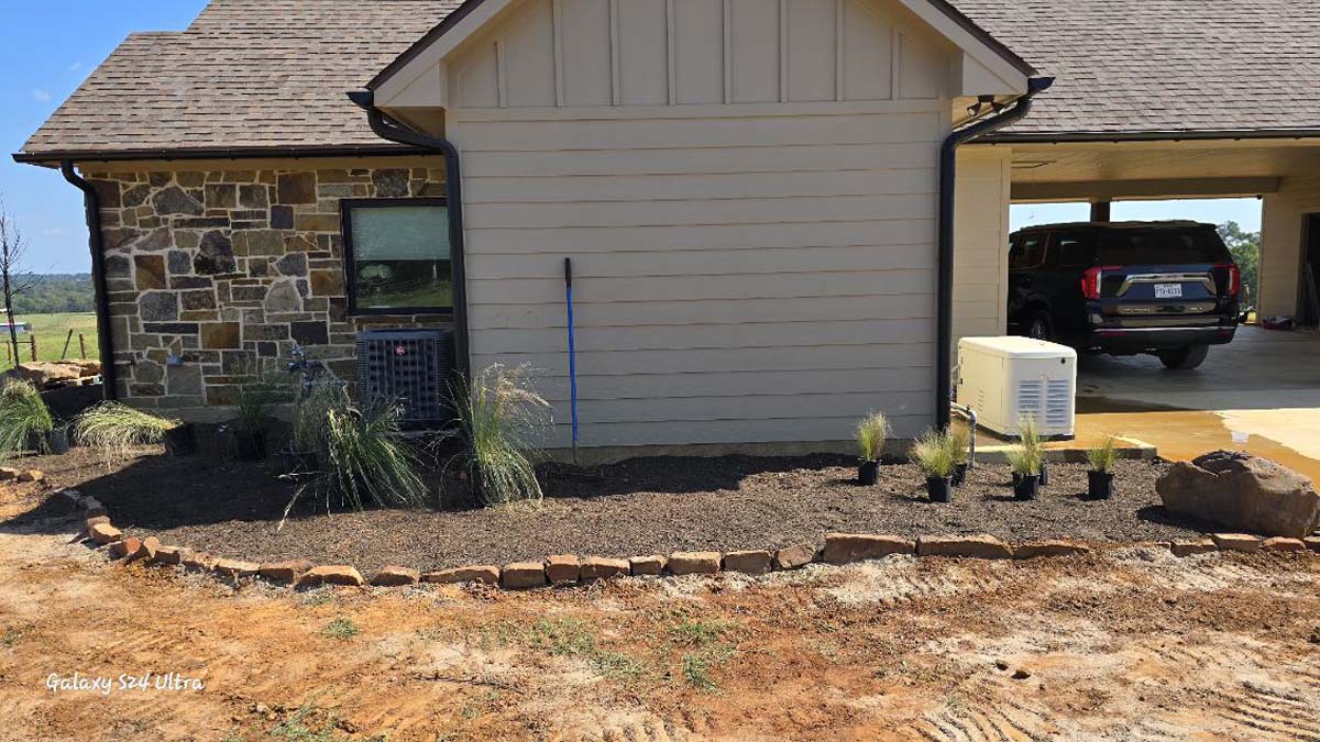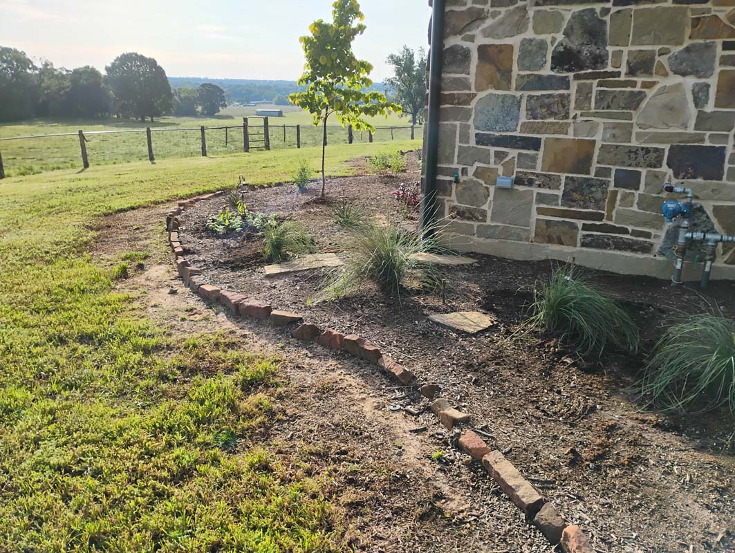 After installing an irrigation system and designing and building flower beds, our team hydromulched the lawn for this new construction project. We want your yard to be just as beautiful and functional as your home! Let us dress up your new home with a new yard! Call (936) 615-6568 for a free consultation.